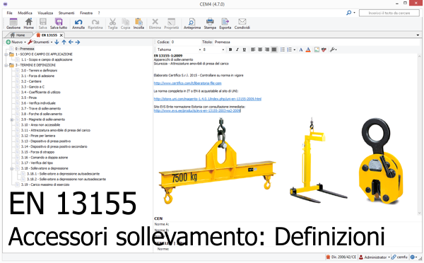 File CEM importabile in CEM4 della norma per la sicurezza dei carrelli industriali; disponibile il file PDF al Documento "Vademecum Sicurezza carrelli elevatori".