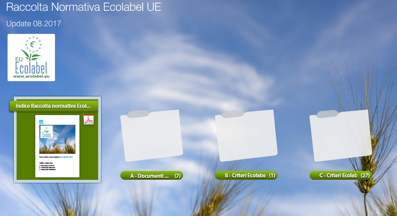 In allegato Portfolio Raccolta di tutta la normativa e guide suddivisa per categoria di Prodotti e Servizi Ecolabel.