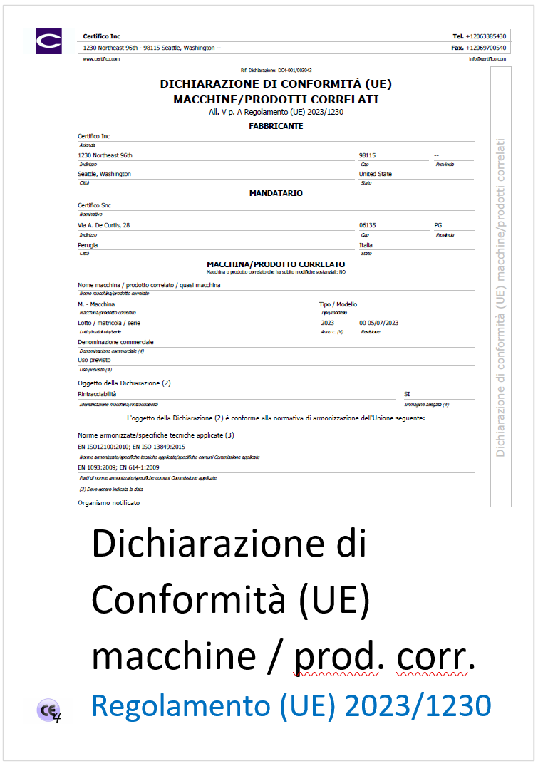 Dichiarazione di conformità UE di macchine e prodotti correlati