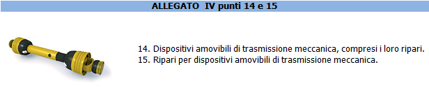 "I dispositivi amovibili di trasmissione meccanica di cui al punto 14, comunemente noti come “alberi di presa di forza” (PTO) sono componenti amovibili di trasmissione dell’energia fra la macchina semovente o un trattore e la macchina azionata, ad esempio una macchina agricola trainata – cfr. § 45: commenti sull’articolo 2, lettera f).