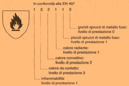 Esempio per guanto di protezione per l’uso contro pericoli termici: