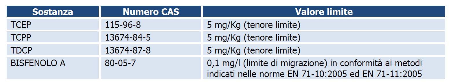 La sostanza, utilizzata come ritardante di fiamma, è stata già inserita nell’elenco di prodotti chimici pericolosi utilizzati nei giocattoli destinati ai bambini di età inferiore ai 36 mesi o in altri giocattoli destinati ad essere messi in bocca.