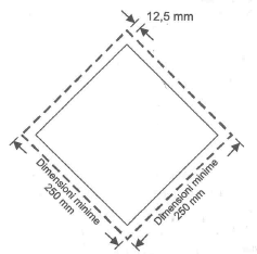 L’etichetta deve avere la forma di un quadrato disposto ad un angolo di 45° (a forma di losanga). Le dimensioni minime devono essere 100 mm x 100 mm, mentre la larghezza minima della linea che forma la losanga deve essere di 2 mm. La linea interna al bordo dell’etichetta deve essere parallela e a una distanza di 5 mm da esso. La linea interna al bordo nella metà superiore dell’etichetta deve avere lo stesso colore del simbolo e la linea interna nella metà inferiore dell’etichetta deve avere lo stesso colore della classe o del numero della divisione nell’angolo inferiore. Laddove le dimensioni non siano specificate, tutte le misure devono essere proporzionate rispetto a quelle mostrate.