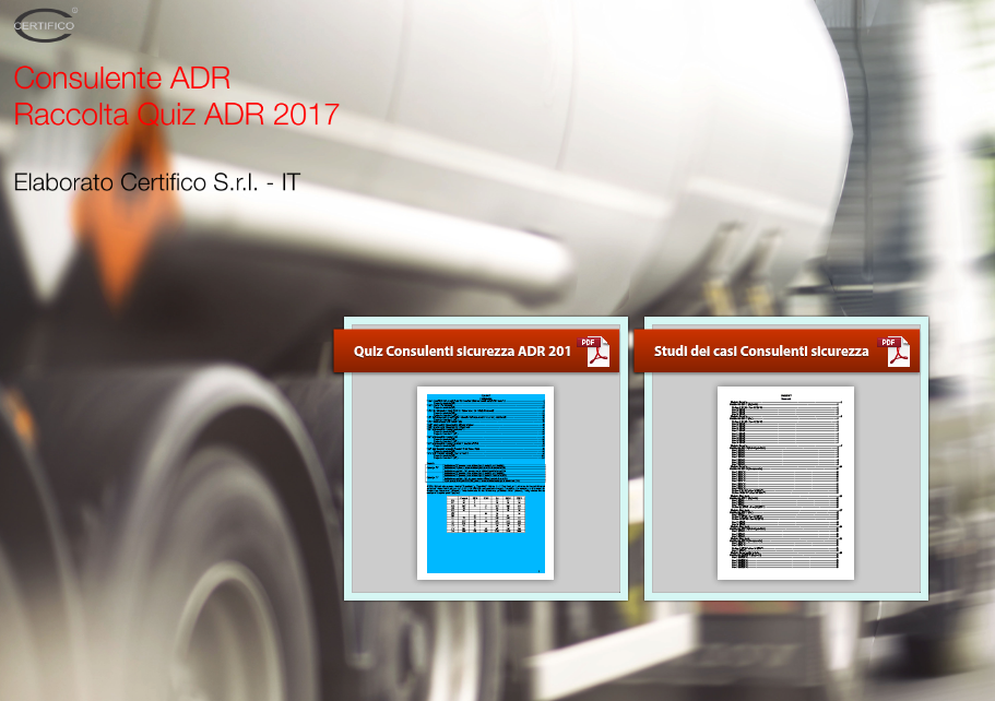 La Direzione Generale per la Motorizzazione ha predisposto dei quiz aggiornati con l'ARD/RID 2017, per i candidati che si accingono a sostenere l'esame per il conseguimento o il rinnovo del certificato di formazione professionale di consulente per la sicurezza del trasporto di merci pericolose.
