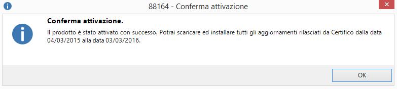 Selezionare la Chiave della Licenza acquistata e attendere il "Messaggio di Conferma attivazione":