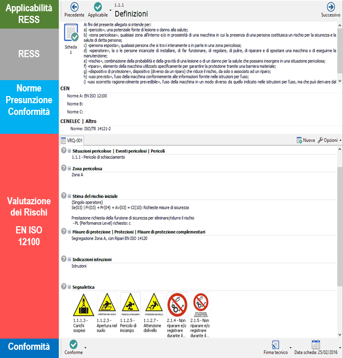 Condizioni "passanti"/"non passanti" (segnalate a video e su report): sono condizioni che "possono"/"non possono", verificarsi durante il Processo di Valutazione dei Rischi tra l'Applicabilità del RESS e la Conformità al RESS stesso.