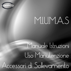 Il Prodotto Certifico M.I.U.M. - A.S. è specificatamente dedicato alla redazione di Manuali di Istruzioni per l’Uso e la Manutenzione di Accessori di Sollevamento in conformità al RESS 1.7.4.2 All. I Dir.2006/42/CE ed al Cap. 7 della norma tecnica EN 13155.