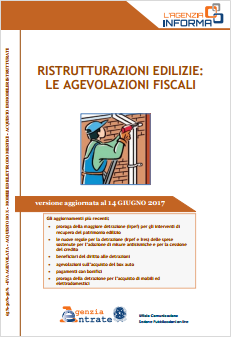 Il 14 giugno è stata pubblicata dall'Agenzia delle Entrate la versione aggiornata della guida "Ristrutturazioni edilizie: Le agevolazioni fiscali", disponibile in allegato.