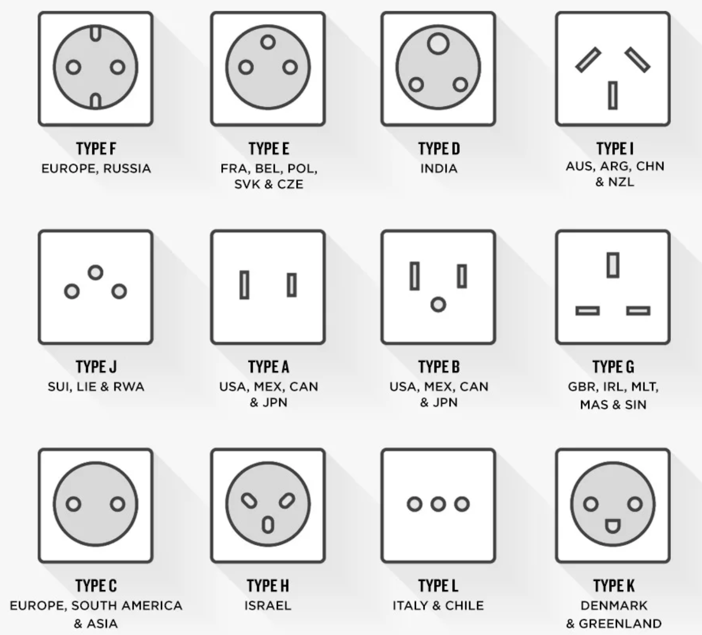 Panoramica normativa con immagini (Fonte wikipedia) sulle Spine e Prese elettriche più diffuse nel mondo.