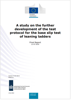 In the Commissions view the European ladder standard needs improvement and therefore published a tender in 2014 with the aim to study the further development of the CEN TC93/WG10 test protocol for the base slip test of leaning ladders.