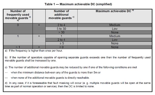 In any case, if it is foreseeable that fault masking will occur (eg multiple movable guards will be open at the same time as part of normal operation or service), then the DC is limited to none.