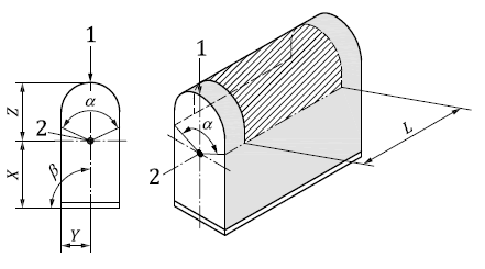 Il fabbricante del dispositivo di protezione sensibile alla pressione deve indicare l'effettiva superficie di rilevamento indicando le dimensioni X, Y, Z, gli angoli e la lunghezza di rilevamento effettiva L come indicato nelle Figure 2 e 3.