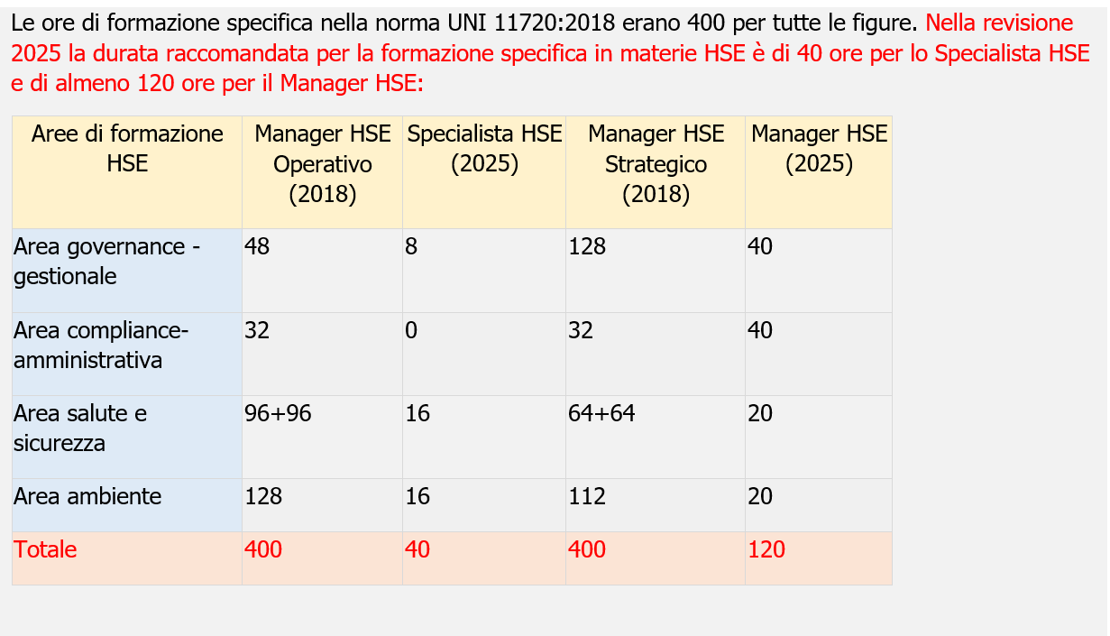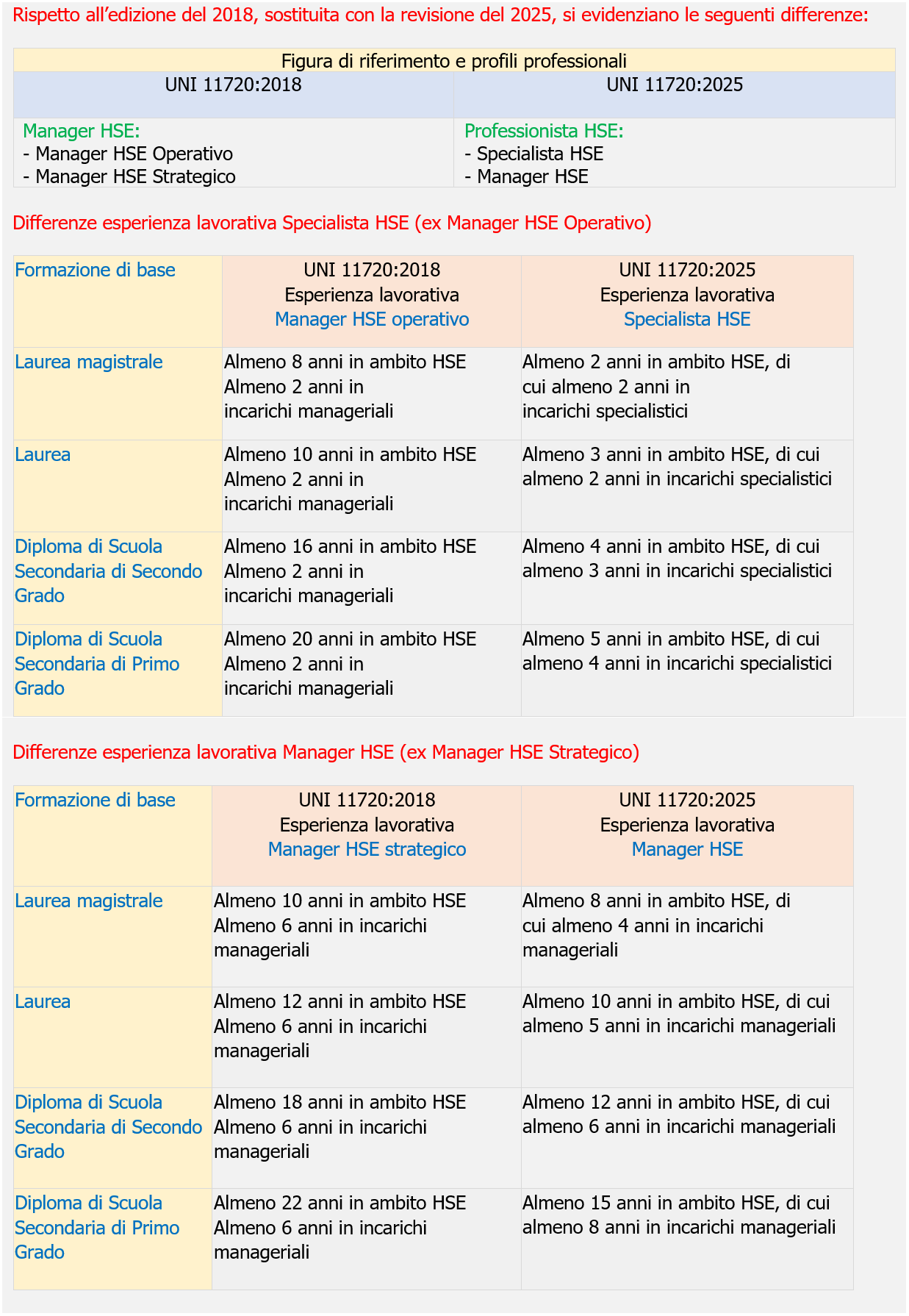 Al fine di fornire dei riferimenti certi e oggettivi ai professionisti in ambito HSE ed alle organizzazioni interessate a tali profili professionali, nei prospetti seguenti sono definite le caratteristiche dei due profili di Professionista HSE.
