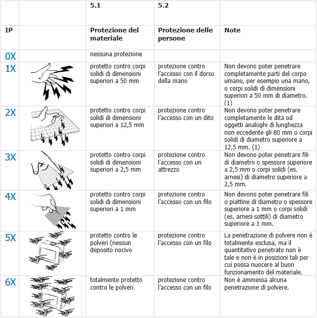 5. GRADI DI PROTEZIONE CONTRO L’ACCESSO A PARTI PERICOLOSE E CONTRO L’INGRESSO DI CORPI SOLIDI ESTRANEI INDICATI DALLA PRIMA CIFRA CARATTERISTICA