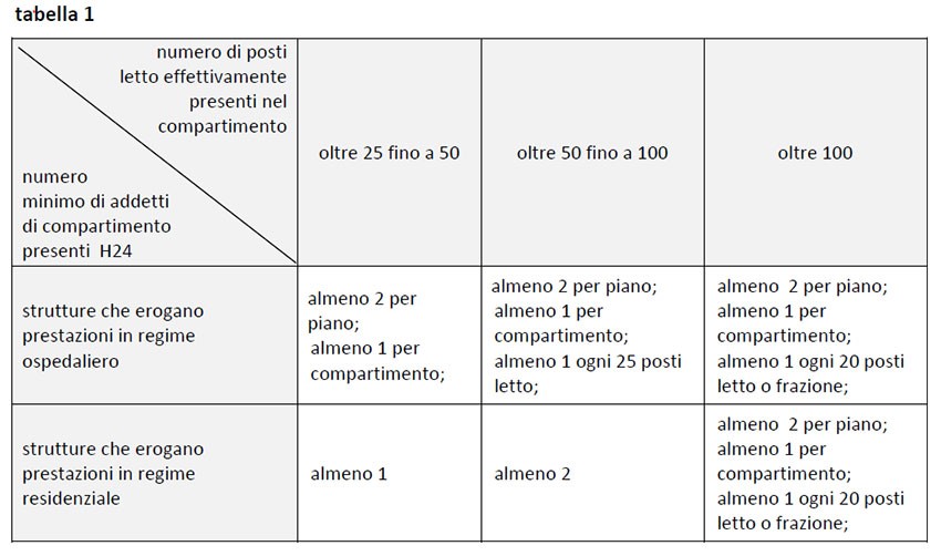 Il numero minimo degli addetti di compartimento è stabilito dalla tabella 1 (i numeri non interi ricavati dai calcoli devono essere arrotondati all’unità superiore).