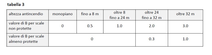 valori di B (altezza antincendio)