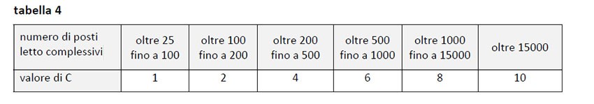 i valori di C sono riportati in tabella 4. I posti letto da inserire sono quelli presenti globalmente nella struttura, anche se divisa in padiglioni;