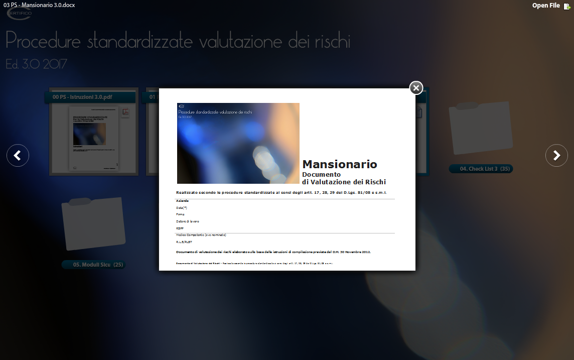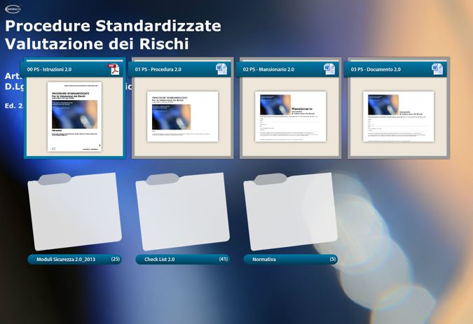 Nell'Edizione 4.0 2018 sono state aggiornate le check list, relative ai pericoli delle Procedure Standardizzate, ed apportati miglioramenti grafici e di formattazione del prodotto.