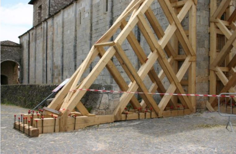 Foto dell'intervento nella chiesa di Sant'Eusanio Forconese (Terremoto de L'Aquila 6 aprile 2009), il primo effettuato conformemente alle schede STOP, per la messa in sicurezza post-sisma