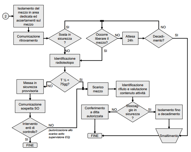 Figura 3.4 – Schema del flusso delle operazioni previste per la gestione di una anomalia radiometrica accertata dal sistema di sorveglianza - ISPRA Linee guida per la sorveglianza radiometrica di rottami metallici e altri rifiuti