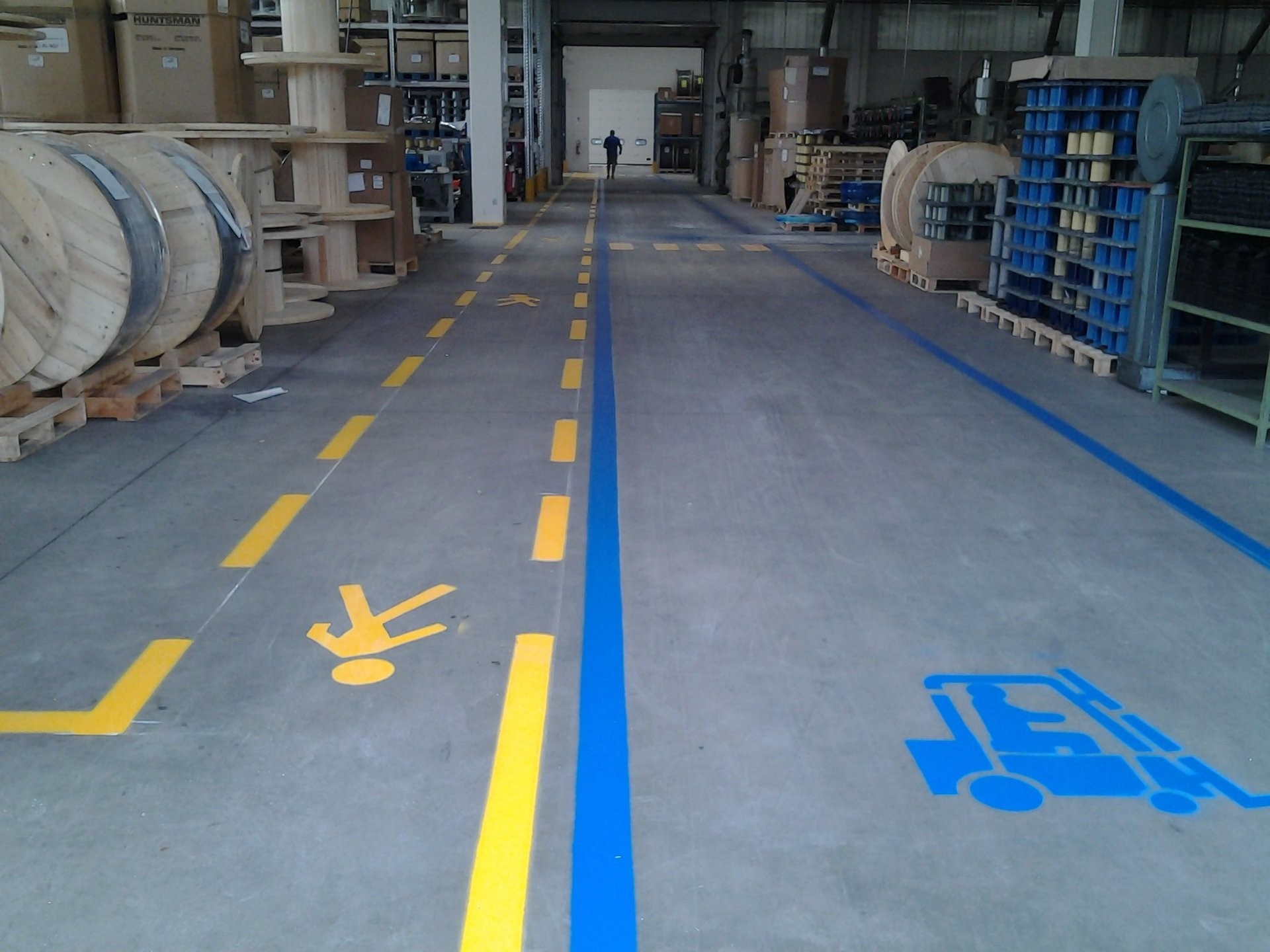 Il D.Lgs. 81/2008 prevede che le vie di circolazione dei veicoli debbano essere chiaramente segnalate con strisce continue chiaramente visibili. La realizzazione delle strisce dovrà tenere conto delle distanze di sicurezza necessarie tra i veicoli che possono circolare ed eventuali ostacoli, nonché prestare particolarmente attenzione alla presenza di pedoni.
