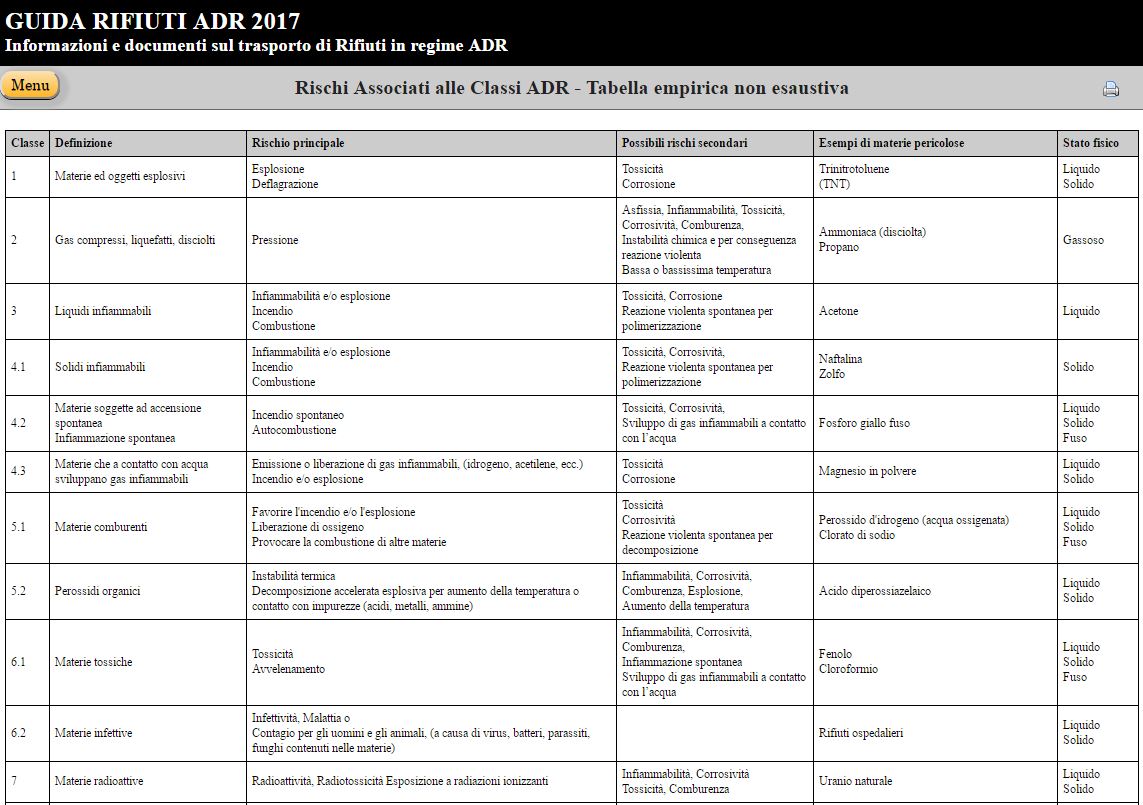 8. Rischi Associati alle Classi ADR - Tabella empirica non esaustiva