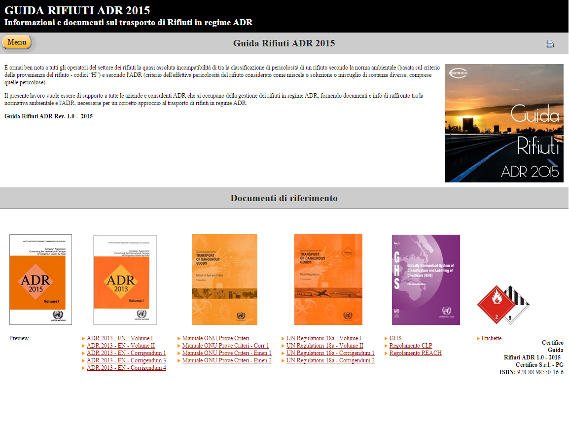 Il presente lavoro vuole essere di supporto a tutte le aziende e consulenti che si occupano della gestione dei rifiuti in regime ADR, fornendo documenti e info di raffronto tra la normativa ambientale e l'ADR, necessarie per un corretto approccio al trasporto di rifiuti in regime ADR.