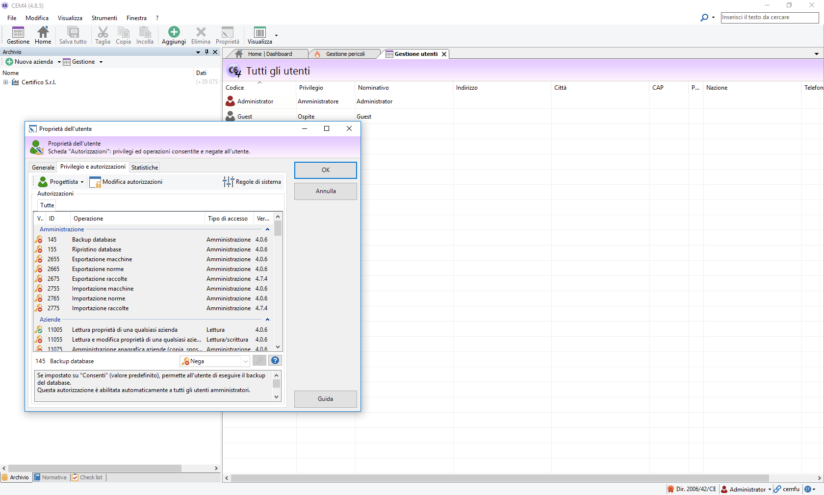 Con la funzione "File CEM " e l'editor integrato, puoi gestire e archiviare Norme / Check list, sulle quali effettuare Valutazioni dei Rischi/Conformità personalizzate: