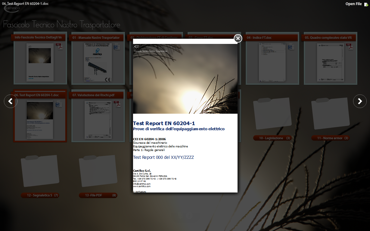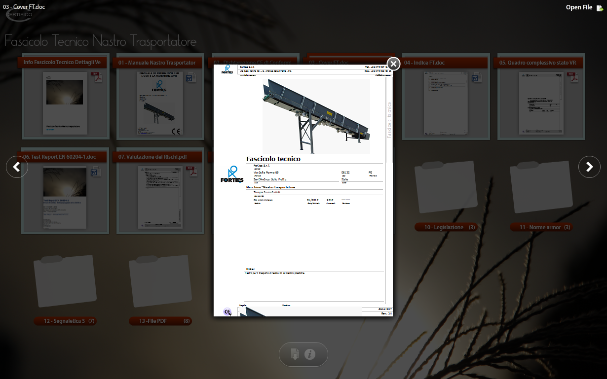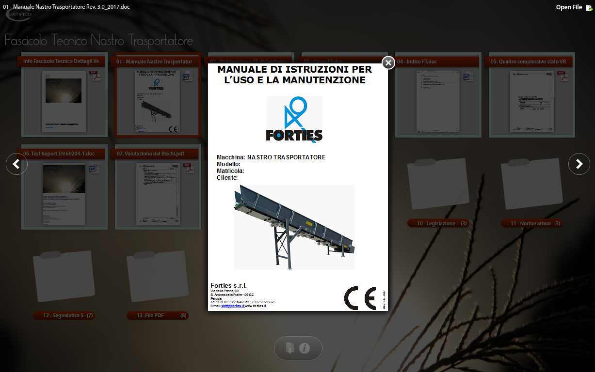 Modello di Fascicolo Tecnico Nastro Trasportatore, completo di: