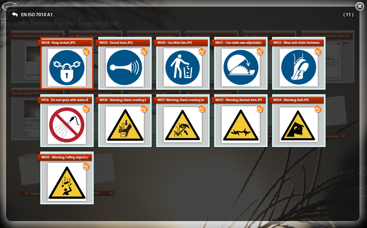 - EN ISO 12100 Sicurezza del macchinario - Principi generali di progettazione - Valutazione del rischio e riduzione del rischio.