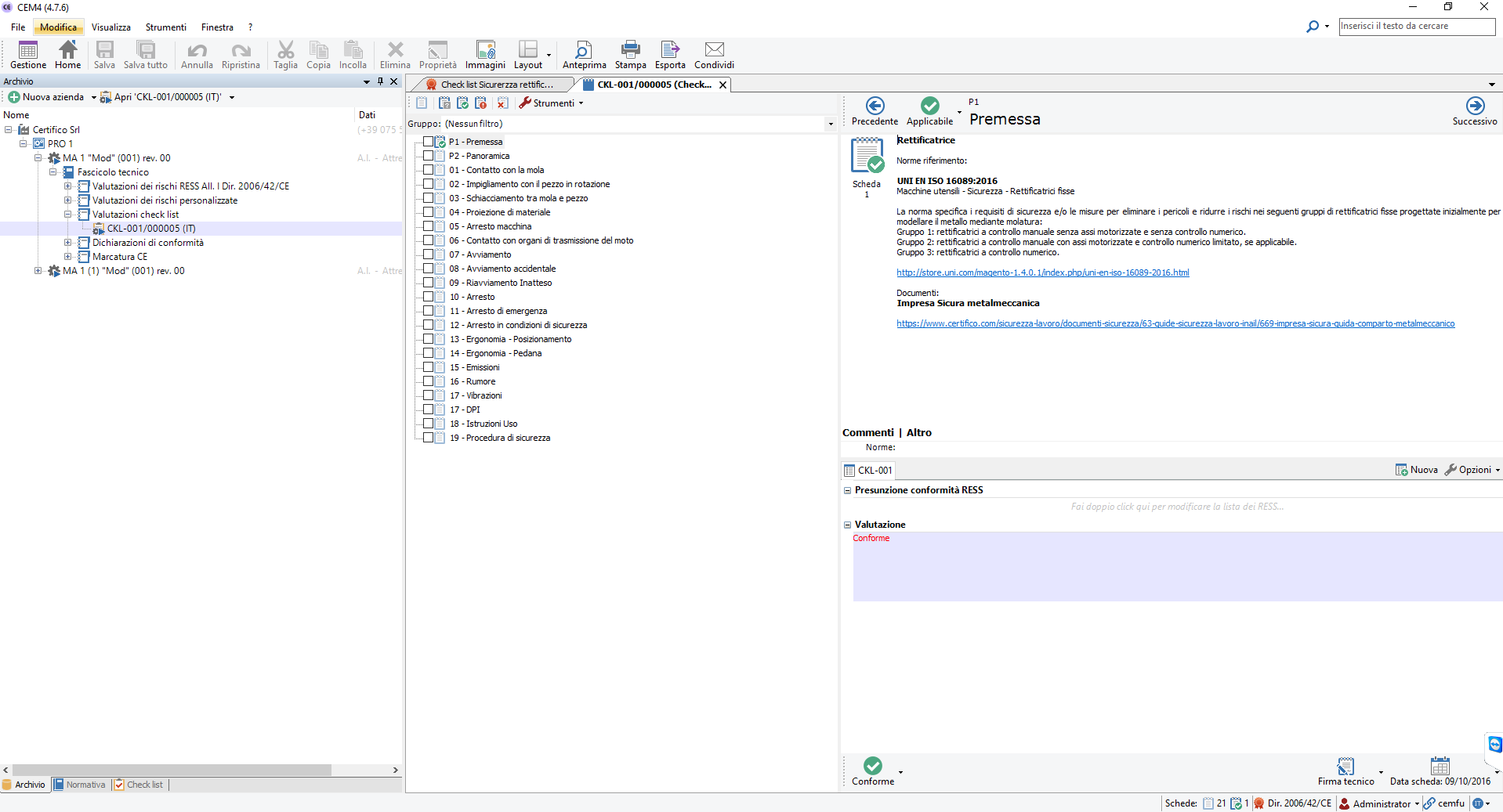 | 01. Check list sicurezza rettificatrici.zip File CEM - Rev. 0.0 2017 |