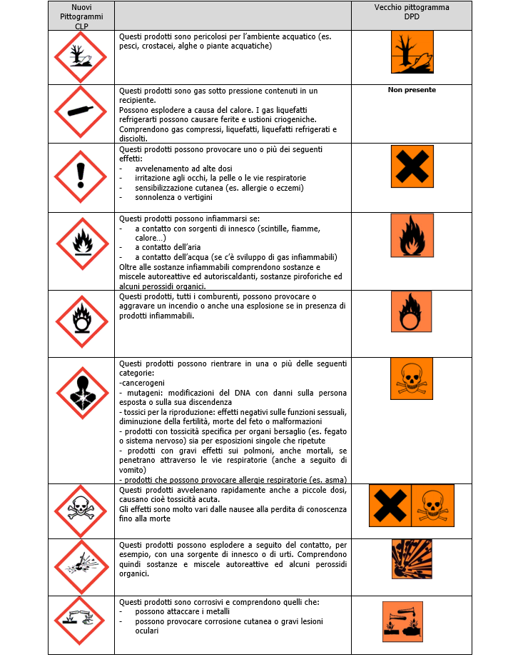 Nuovi pittogrammi di pericolo GHS CLP - Vecchi pittogrammi simboli di pericolo DPD: