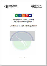 For details regarding specific technical elements of pesticide legislation, reference is made to the set of technical guidelines that FAO and WHO have published. Regularly updated lists with links to these documents can be found at: FAO: http://www.fao.org/agriculture/crops/thematic-sitemap/theme/pests/code/list-guide-new/en/ WHO: http://www.who.int/whopes/recommendations/who_fao_guidelines/en/