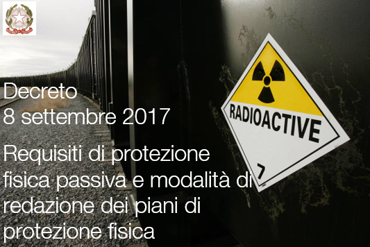 Il presente decreto stabilisce i requisiti per la protezione fisica passiva delle materie nucleari durante il loro impiego, lo stoccaggio e il trasporto, nonché i requisiti per la protezione fisica passiva delle materie e delle installazioni nucleari da atti di sabotaggio, di cui all’art. 5, comma 2 della legge n. 58/2015. Il presente decreto stabilisce inoltre le procedure ed i contenuti del documento relativo al piano di protezione fisica per il rilascio del nulla osta per la protezione fisica passiva delle installazioni nucleari e degli attestati di protezione fisica passiva per le attività di trasporto, di cui all’art. 6 della suddetta legge.