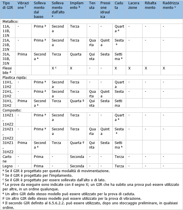 La seguente Tabella indica i codici da utilizzare per indicare i tipi di imballaggio secondo il genere di imballaggio, il materiale utilizzato per la sua costruzione e la sua categoria; essa rinvia anche alle sottosezioni da consultare per le prescrizioni applicabili.