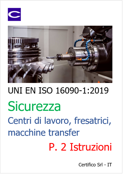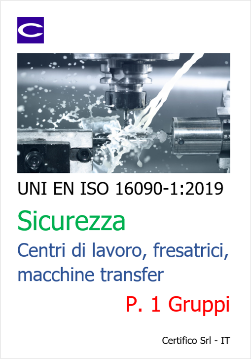 La UNI EN ISO 16090-1:2019 (tipo C ai sensi della EN ISO 12100), specifica i requisiti tecnici di sicurezza e le misure di protezione per la progettazione, la costruzione e la fornitura delle macchine utensili utilizzate per il taglio a freddo di metalli e materiali non combustibili (alesatrici, fresatrici, centri di lavoro, macchine transfer e macchine speciali. La norma, alla data, non è armonizzata per la Direttiva macchine 2006/42/CE.
