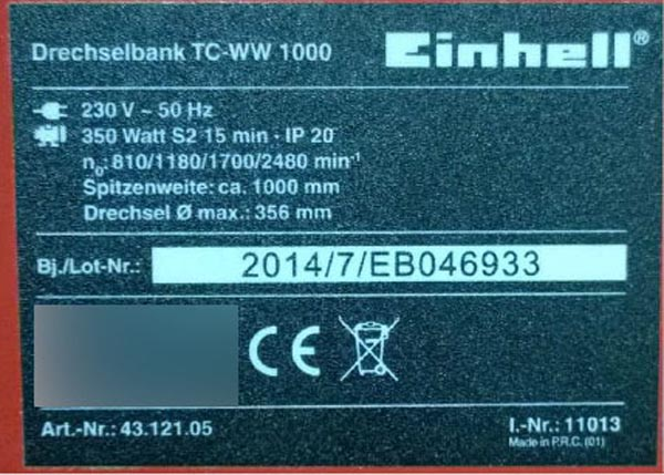 Il prodotto “tornio per il legno” Einhell Mod. TC-WW 1000 è stato volontariamente ritirato dal marcato.