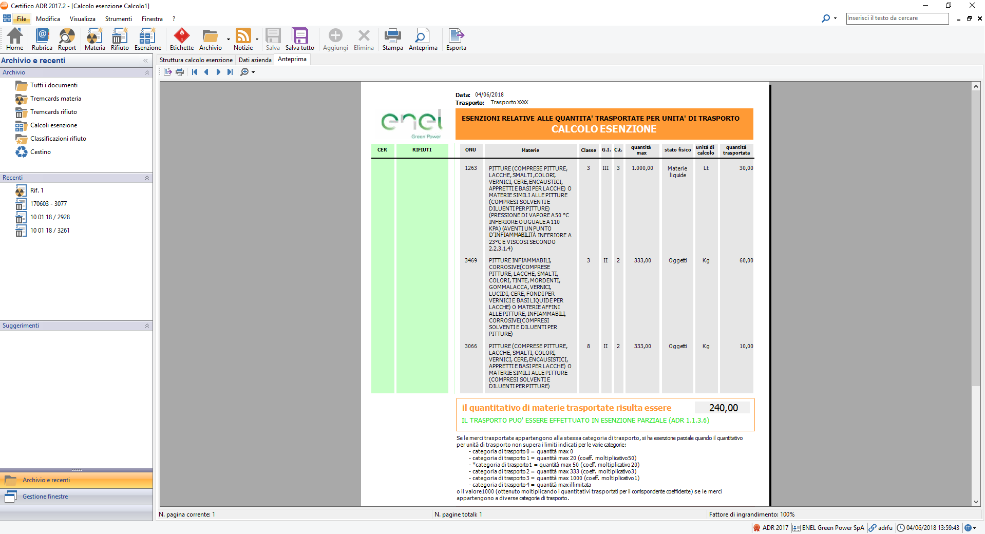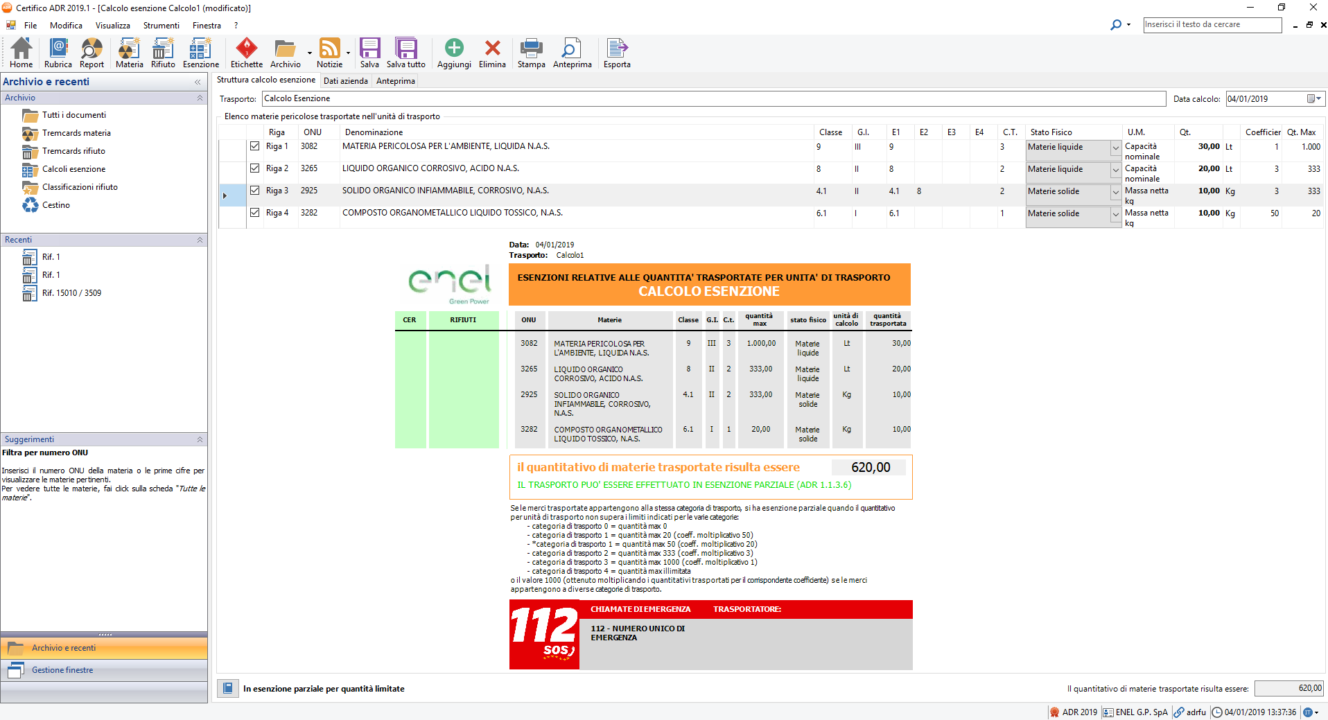 In Certifico ADR Manager è presente la funzione di Calcolo dell'esenzione parziale ADR con Report, vedi due esempi di Report Calcolo esenzione in allegato (Download Es. 1) ed (Download Es. 2) che può essere allegata ad DdT.