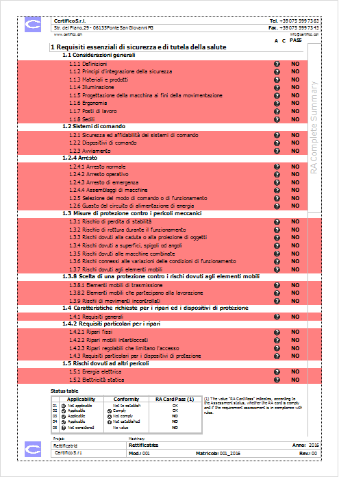 Come controlliamo lo stato dei RESS della Direttiva macchine: il Report Quadro complessivo Stato VR / RA complete summary.