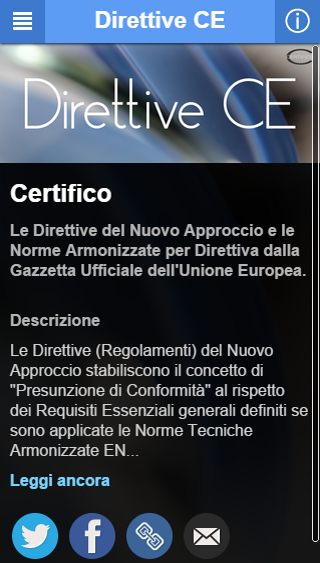 L'App sincronizza le Direttive Nuovo Approccio e le ultime Comunicazioni relative alle Norme Armonizzate EN per Direttiva.