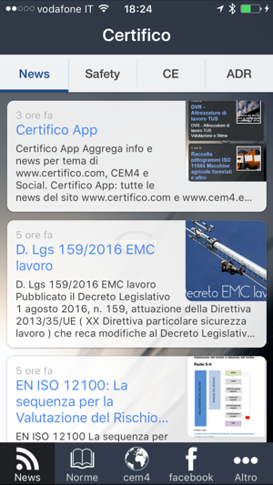 Certifico App: tutte le news del sito www.certifico.com e www.cem4.eu suddivise per aree tematiche e con riferimento ai social twitter, fabebook/RAPEX, ecc