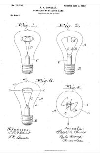 1. In una lampada elettrica a incandescenza, un filamento avente convoluzioni consecutive che formano un'elica la cui asse è trasversale all'asse della lampada, l'elica che è appiattita in una direzione parallela all'asse della lampada , sostanzialmente come descritto. 2. In una lampada elettrica a incandescenza, un filamento avvolto per formare un'elica il cui asse longitudinale è in un piano ad angolo retto rispetto all'asse della lampada, l'elica che è appiattita in una direzione parallela all'asse della lampada, combinato con un globo a forma di pera appiattito alla sua estremità per corrispondere all'illustrazione dell'elica, sostanzialmente come descritto. 3. In una lampada elettrica a incandescenza, un filamento avvolto in una pluralità di convoluzioni per realizzare un'elica trasversale all'asse della lampada, l'elica che è appiattita parallela all'asse della lampada e termina su lati opposti del suo maggior diametro; Le gambe di fila mentale che conducono diagonalmente direttamente da tali terminazioni, sostanzialmente come descritto. 4. In una lampada elettrica a incandescenza, un filamento avvolto in una pluralità di convoluzioni per realizzare un elica avente un asse longitudinale in un piano ad angolo retto rispetto all'asse della lampada, riducendo le convoluzioni parallele all'asse della lampada e L'elica che termina sui lati opposti del suo diametro maggiore, il filamento che porta da esso in due diagonali sostanzialmente dritti. Gambe, combinate con un globo di una forma di pera appiattita sulla sua estremità della cupola e con il supporto interno in cui. Le estremità estreme di dette gambe del filamento sono fissate, sostanzialmente come descritto.