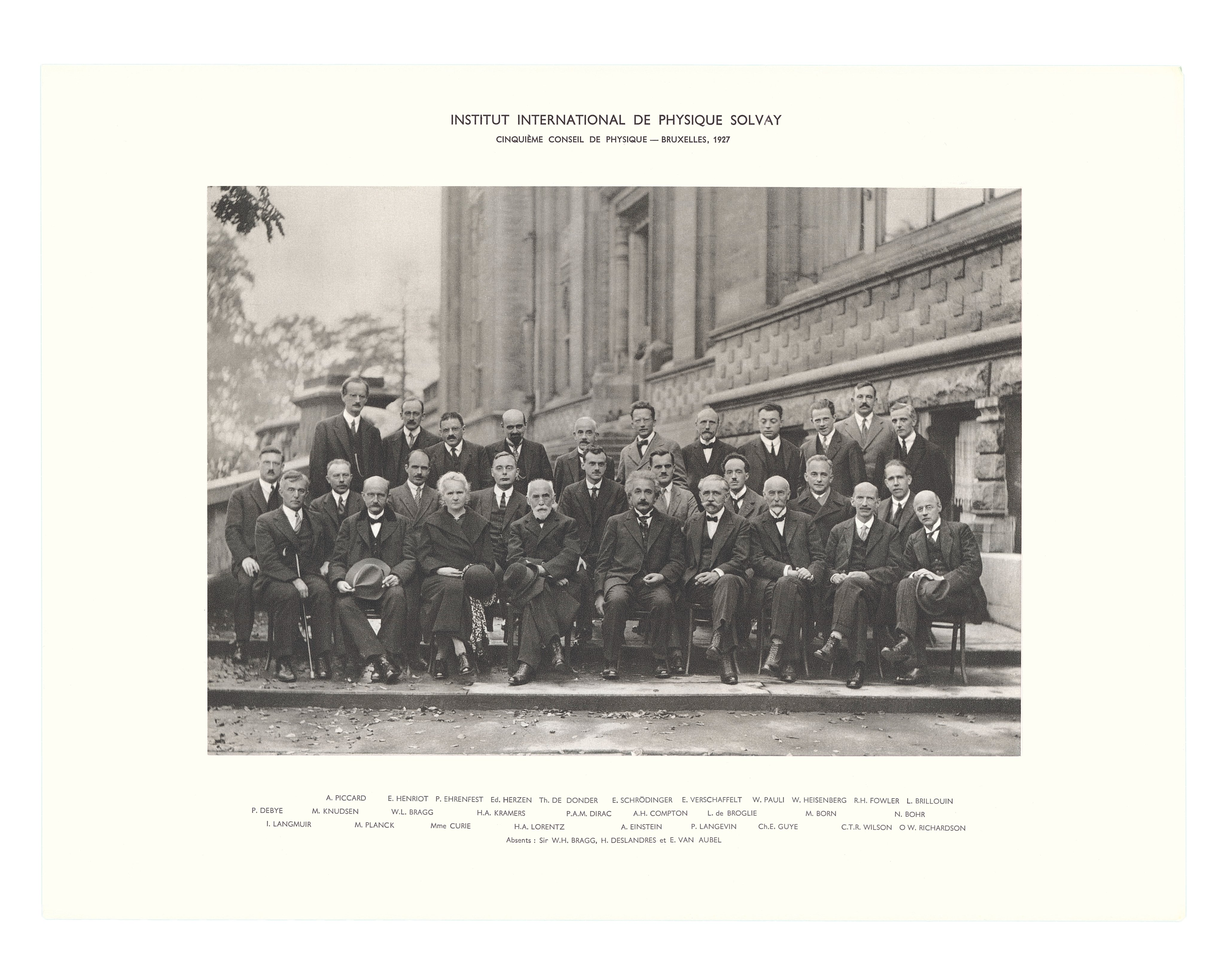 The iconic picture made in 1927 during the Solvay International Conference on Electrons and Photons (Fifth conference). This world-famous photo shows the prime of the scientific leadership of that time. (Brussels, 24 / 29 October 1927)