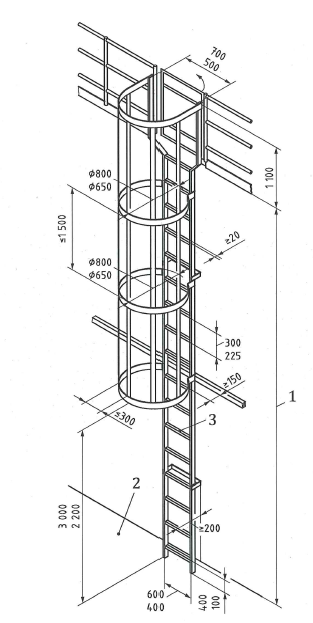 Es. 4 Sintesi dei principali dimensioni di una scala fissa dotati gabbia di sicurezza