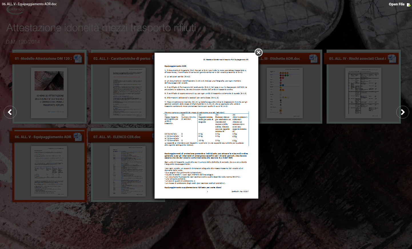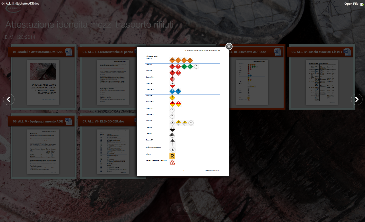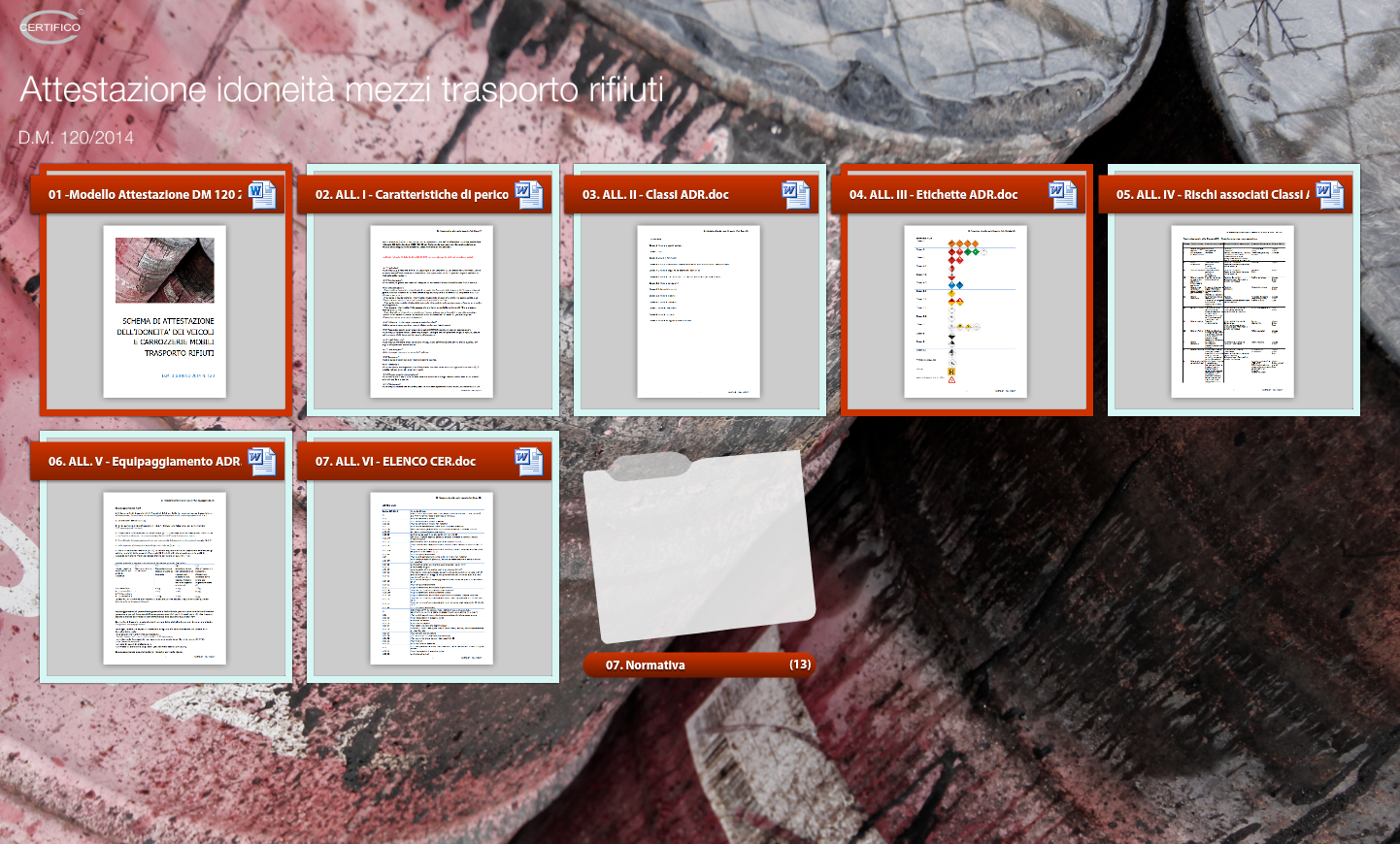 Il modello di Attestazione consente di redigere un documento completo e conforme alle norme vigenti in materia di trasporto rifiuti e può essere di particolare aiuto, attraverso suggerimenti e allegati specifici, ad individuare ed attestare l'idoneità dei mezzi al trasporto di rifiuti in regime ADR.