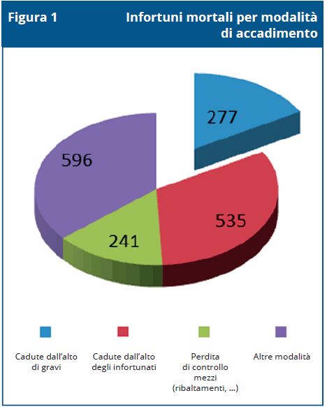 Una percentuale residua (5,9%) riguarda situazioni quali, ad esempio, la caduta di un cancello fuoriuscito dalle guide, la caduta di un autoveicolo posizionato sul ponte di sollevamento all’interno di un’autofficina, ecc.