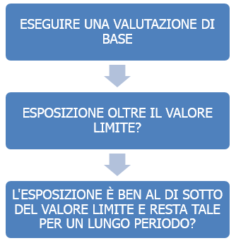 La valutazione dell’esposizione si applica per la prima valutazione e viene ripetuta dopo una qualsiasi modifica consistente delle condizioni operative.
