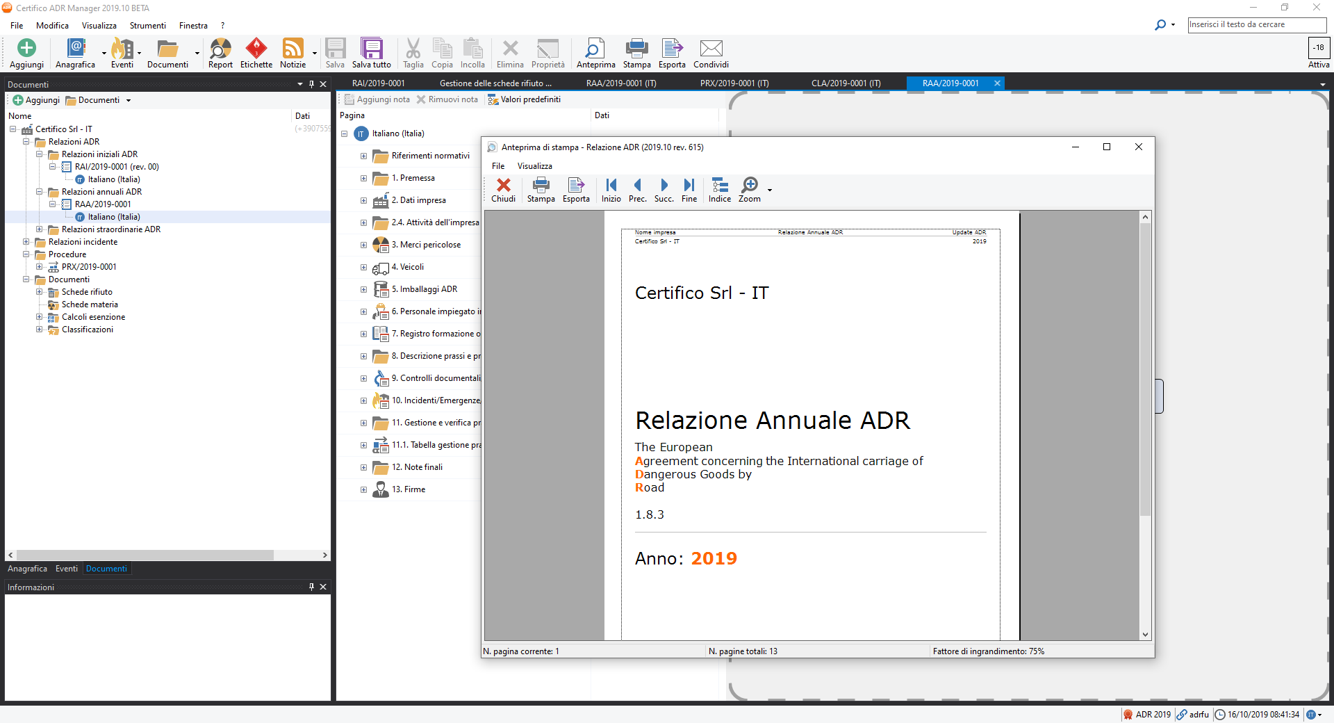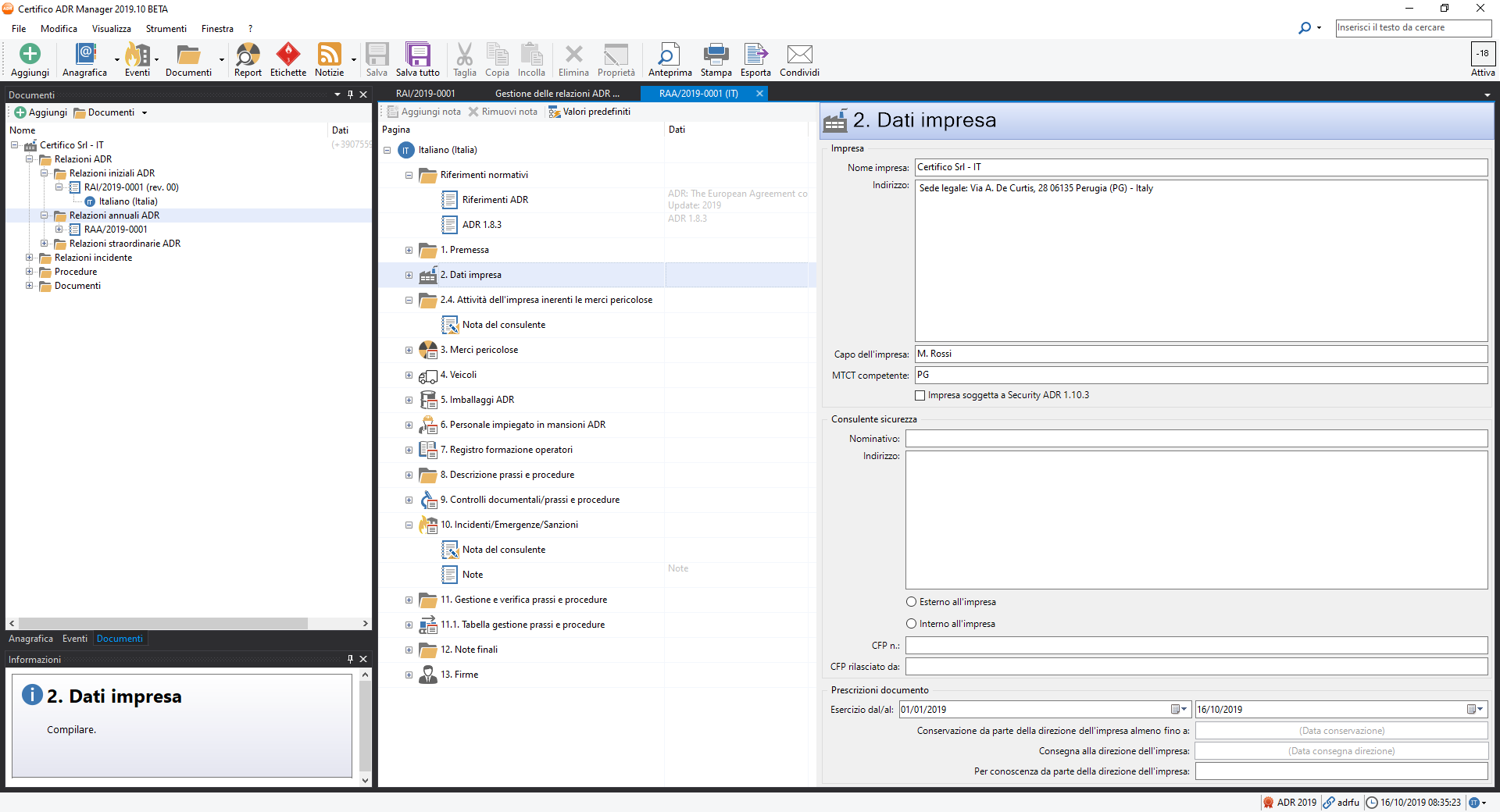 Certifico ADR Manager completamente rinnovato, integra, oltre alle funzioni ADR, la gestione degli obblighi del Consulente ADR (D.Lgs. 35/2010):