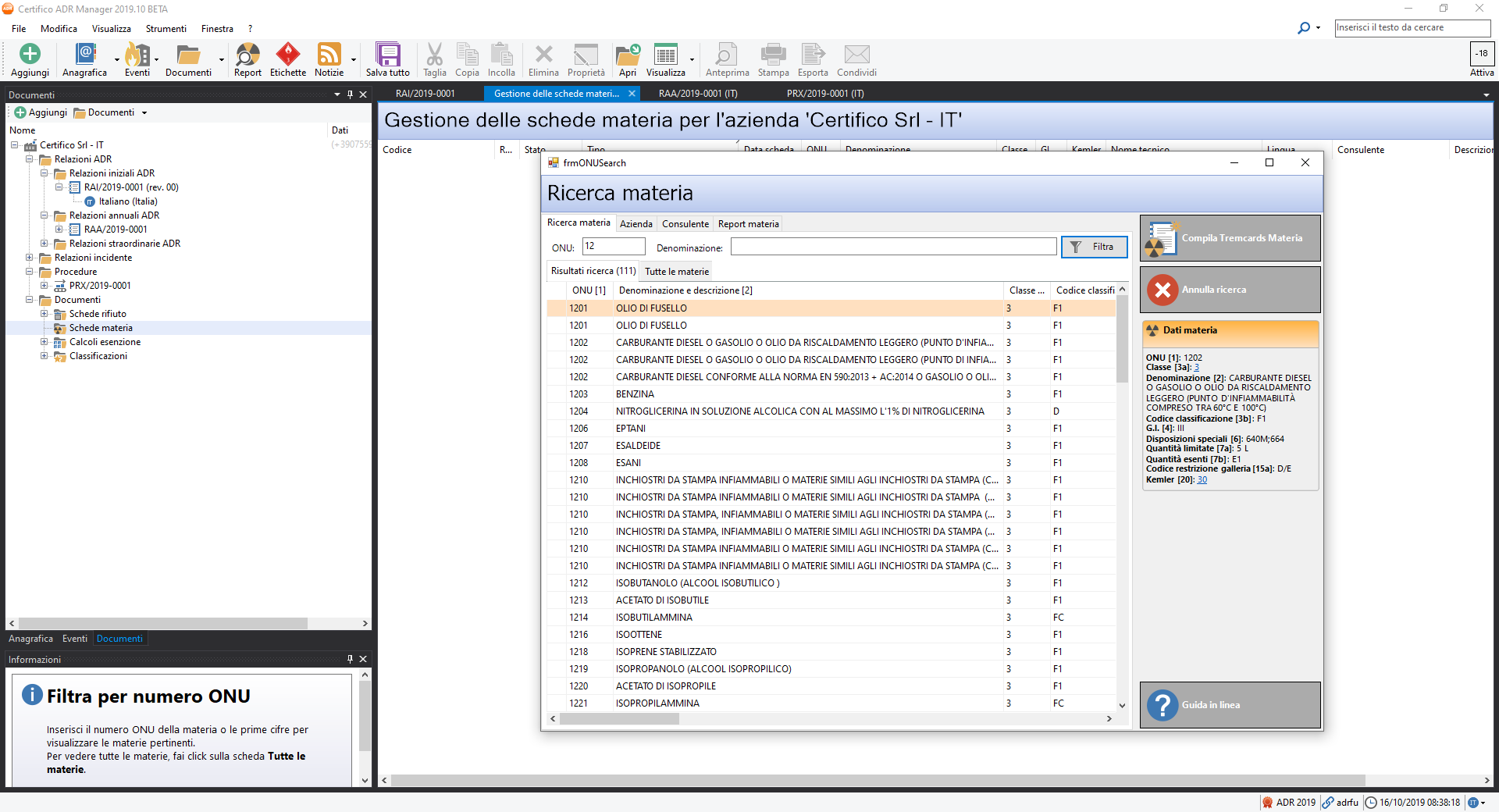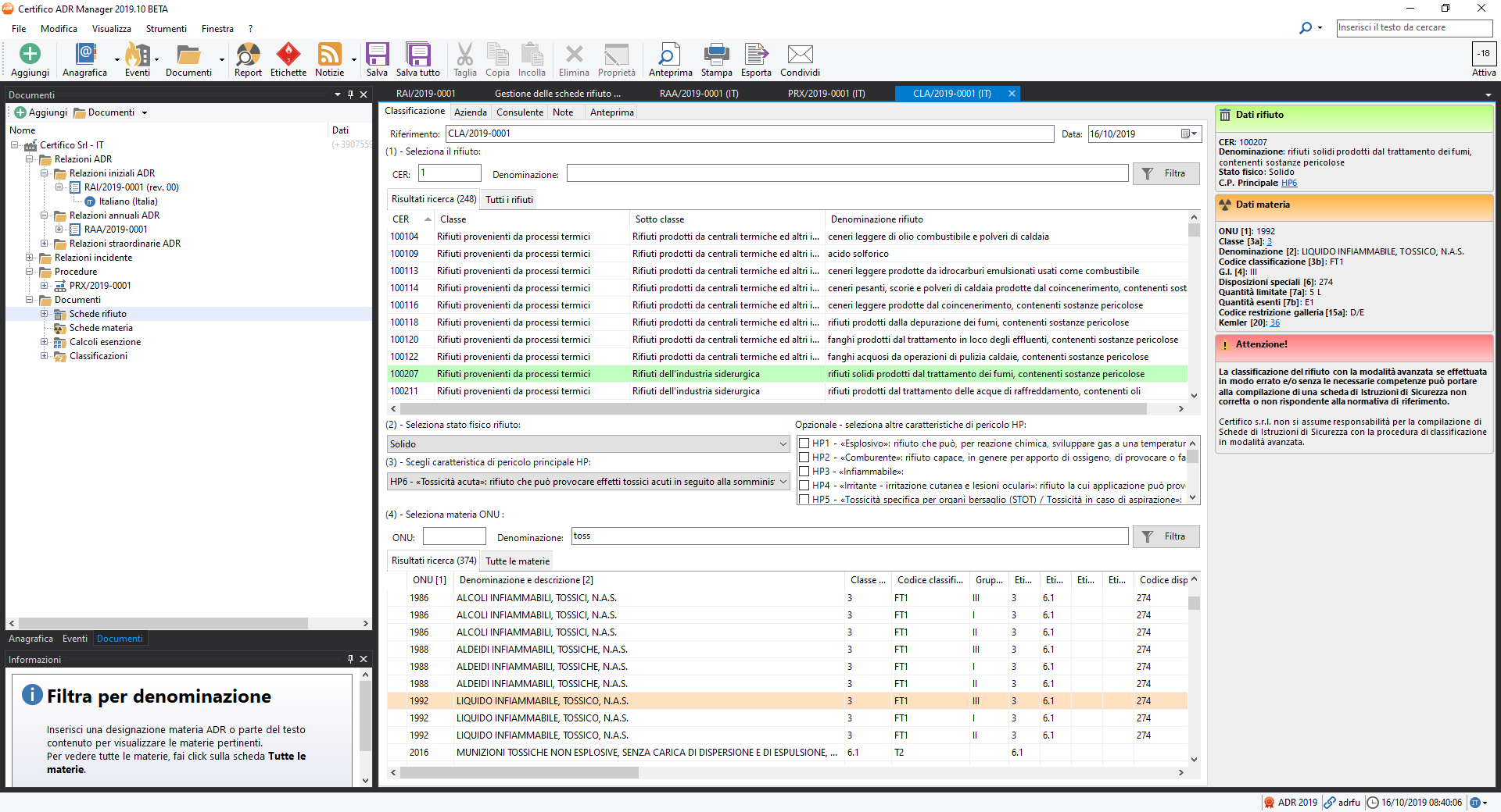 - Classificazione di un rifiuto pericoloso in materia ADR;