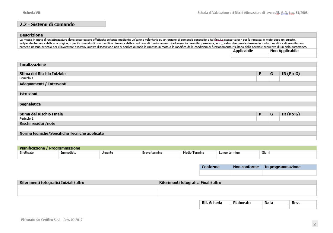 - 189 Schede di Valutazione e Stima dei Rischi macchine